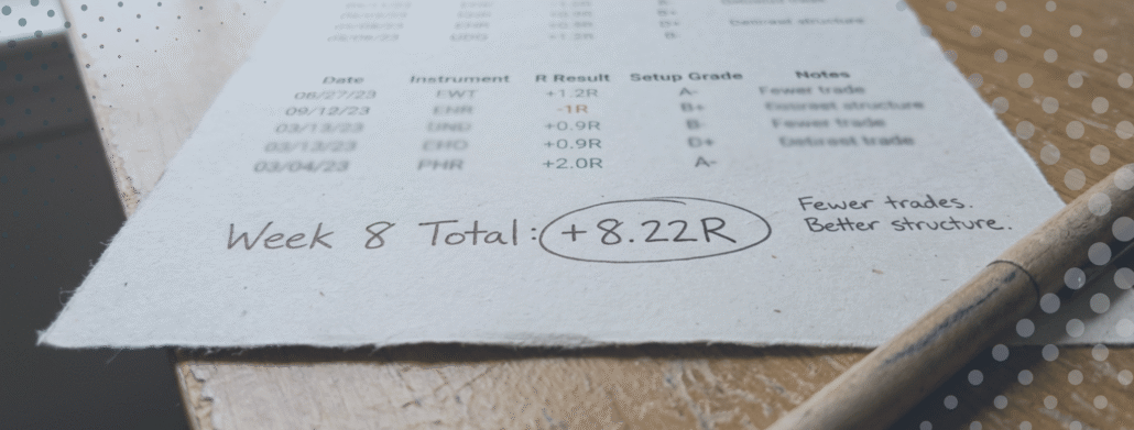 In R terms, Week 8 closed +8.22R across 5 trading days.